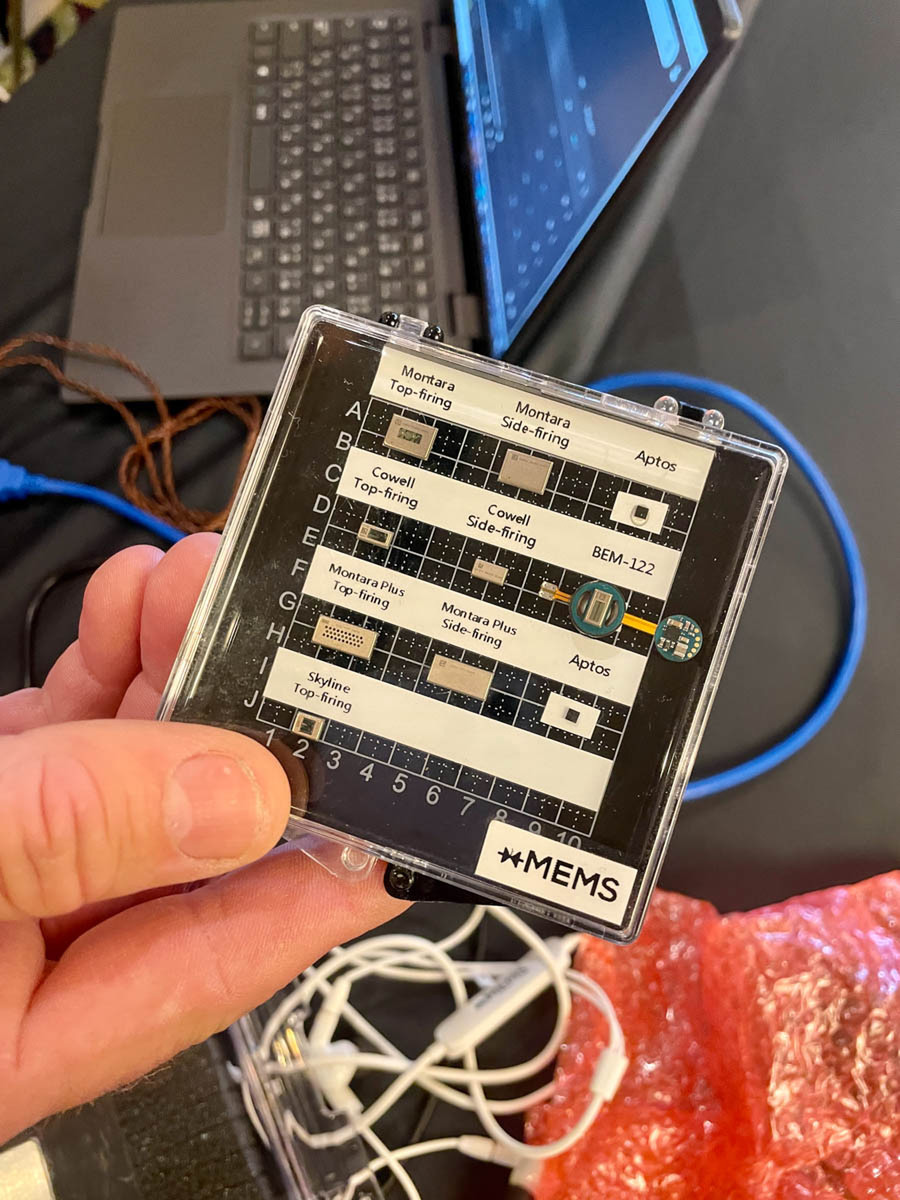 アスキーの連載記事でたびたび取り上げてきたMEMSスピーカー技術がいよいよ日本でも一般に公開された。MEMSスピーカーの開発メーカーであるxMEMSの国内部門が、ヘッドフォン祭でブースを持って展示したのだ。会場にはプロトタイプだが、iFi audioのiDSDモデルをMEMS用に昇圧できるように改造されたプロトタイプが持ち込まれた。これは製品となる「Diablo X」とは異なるものだ。ドライバーはシングルの「Montara Plus」やツィーターとしても使用できる「Cowell」などが持ち込まれていて、Cowellではダイナミック型とのハイブリッドも披露されていた。