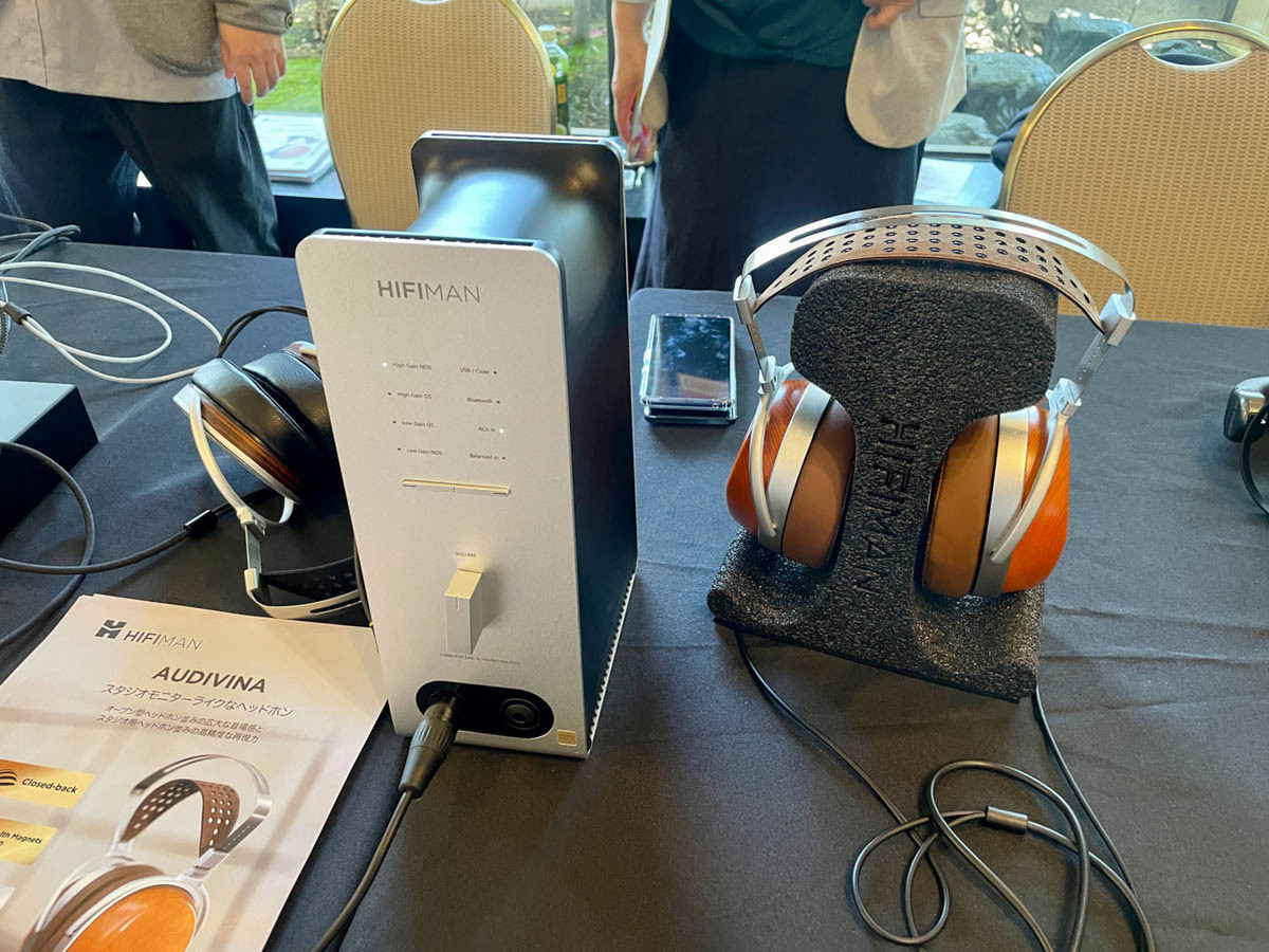 HIFIMANは、日本初登場の新製品として、密閉型で平面磁界型のヘッドホン「Audivina」と新設計のヘッドホンアンプ「EF600」を展示した。ヘッドホンスタンドにもなる、EF600のデザインが面白い。Audivinaは「ハウジングが新設計」ということだが、試聴してみると密閉型らしからぬすっきりとしたサウンドを聴かせてくれた。
