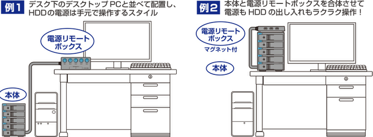電源リモートボックスには「充電専用USBチャージポート」を搭載し、スマートフォンやタブレットなどの充電に利用できる。また、PCの電源ON/OFFに合わせてHDD冷却ファンの回転を制御する電源連動機能にも対応している。