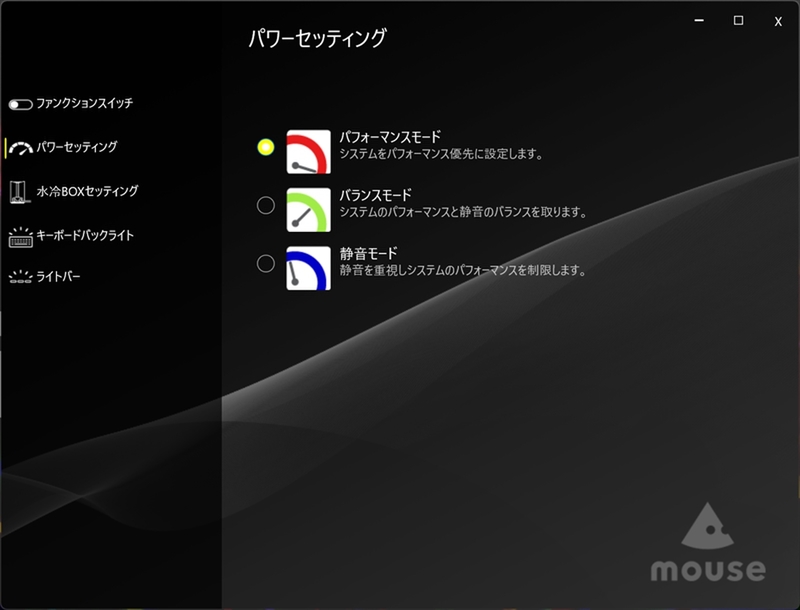 ではDAIV N6-I9G90BK-Aのパフォーマンスをチェックしたい。今回のパフォーマンス検証においては、水冷ユニットを使わず空冷で運用した時と、水冷ユニットのファン回転数60%と40%(それぞれ“水冷60%”“水冷40%”と表記)にした時の3通りで比較する。空冷時は水冷時よりも冷却にハンデがあるため重い処理ではパフォーマンスが落ち、水冷時はファン回転数が大きいほどパフォーマンスが向上すると考えられる。