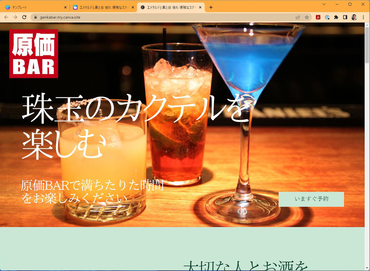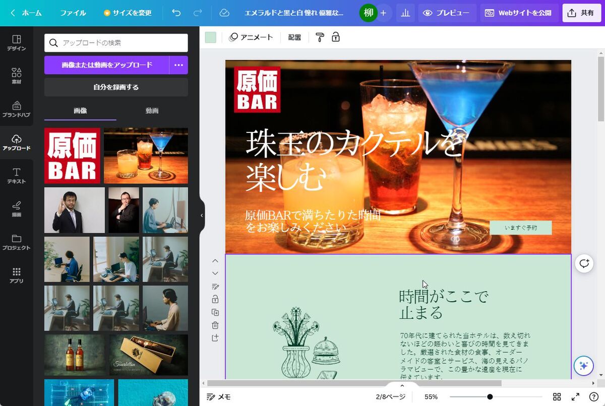 実際に、数分でウェブページが作成できた。確かに、プロに外注したホームページと比べると、シンプルな感じだが、ここまで気軽に作れるのは驚き。簡単ウェブページ作成サービスはいろいろあるが、その分自由に編集できないこともある。しかし、Canvaはいつもの操作で柔軟に編集できるので便利だ。