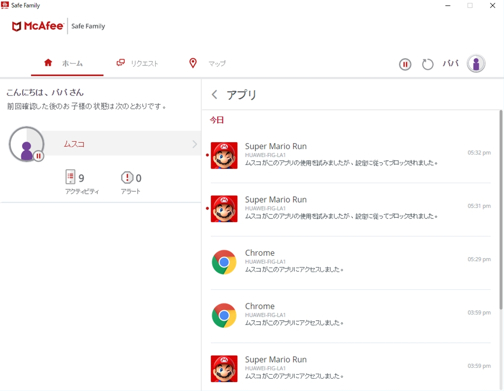 ただ、息子には「どこにいるかはすぐにわかるし、どんなサイトにアクセスしているかもわかるから、それついてとやかく言うことはあまりないと思うけど、バレていると思って使ってね」と念を押しています。
