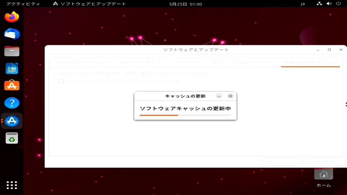 この状態で「ソフトウェアとアップデート」を閉じると、ソフトウェアキャッシュが更新される。更新作業が終わったら、再び「ソフトウェアとアップデート」を起動し、今度は「追加のドライバー」タブを開こう。