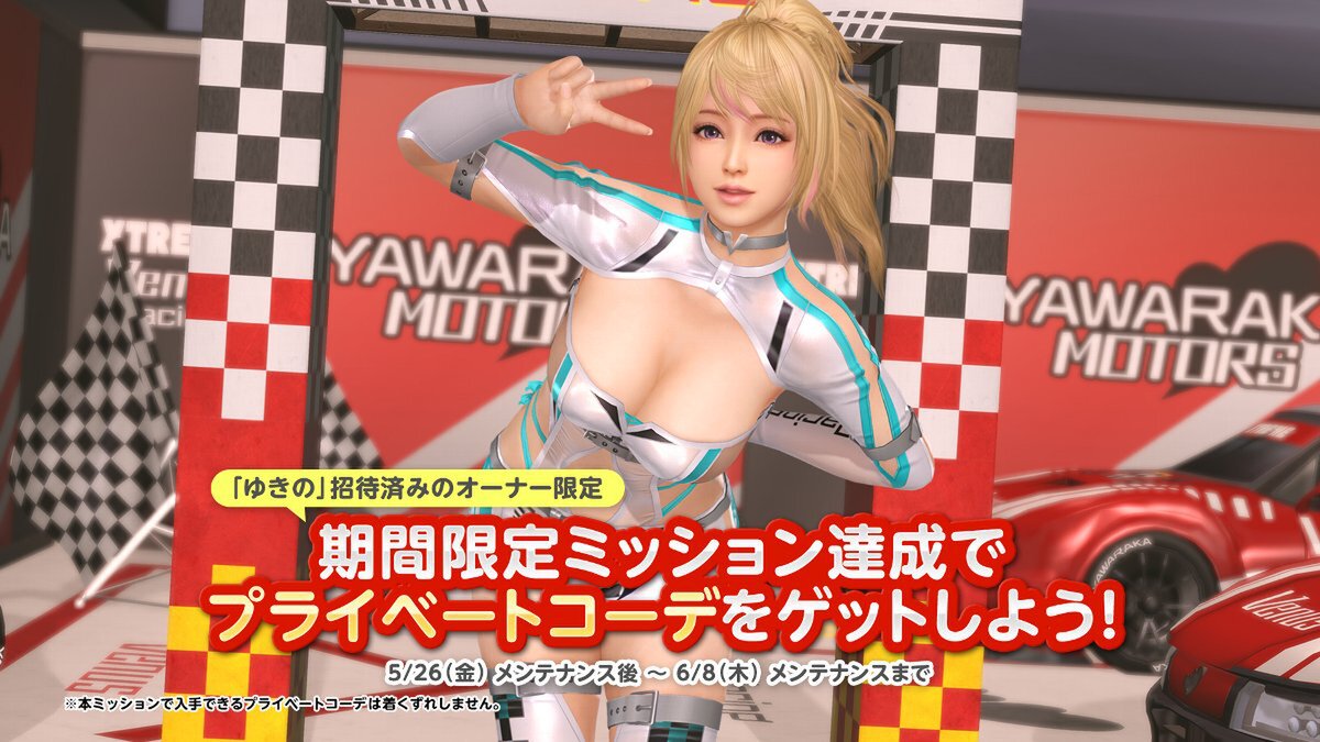 「ゆきの」を招待済みのオーナー限定で挑戦可能な、期間限定ミッションが登場。ミッション達成で「スリップストリーム(ゆきの)」のプライベートコーデをプレゼント。