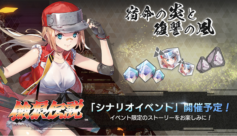 期間限定イベント「宿命の炎と復讐の風」の開催にあわせて、「餓狼伝説(カソード)」が新登場する「新キャストピックアップガチャ」を開催。有償・無償の10回ガチャは、1枠★2以上キャストが確定で登場する。