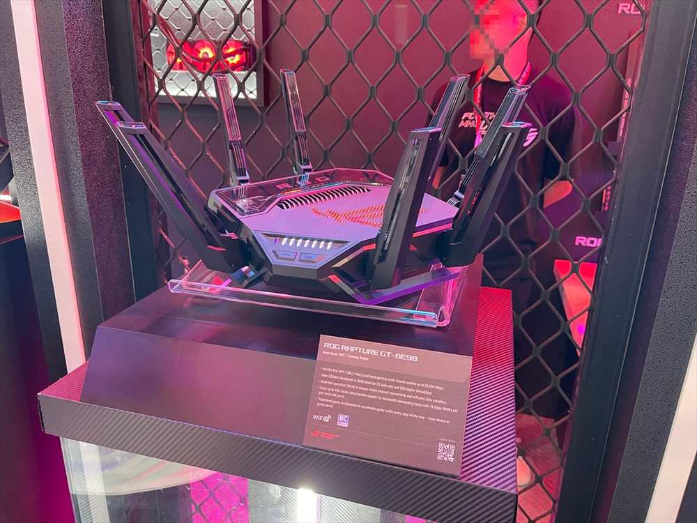 既存の製品はもちろん、5月26日に発売したハイエンドCPUクーラー「ROG RYUJIN III 360 ARGB」、6月14日に発売するポータブルゲーム機型PC「ROG Ally」、CES 2023にて発表したWi-Fi 7対応ゲーミングルーター「ROG Rapture GT-BE98」など、興味深い新製品の展示も多数。