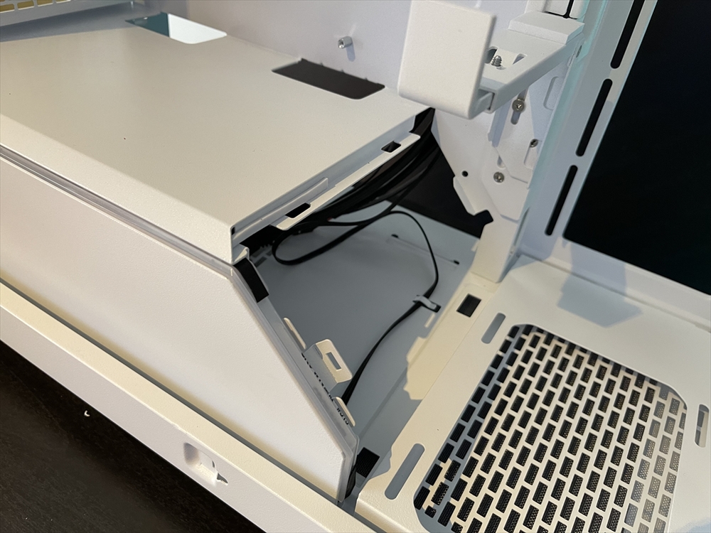 ただし、斜めに設計された底面はこちらも同様。電源ユニットが斜めに入るのは見た目にもなかなかインパクトがあるが、組みこむ時に滑り込ませやすいので意外と実用的に感じる。