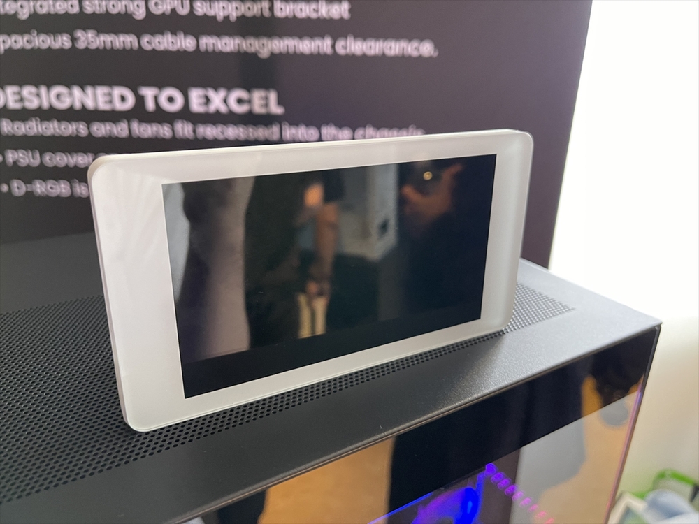 台形の斜面部分を取り外し、別売りの専用ディスプレーをここに埋め込むことができるのである。このディスプレーは、HDMIでビデオカードから映像を入力するため、OS上の映像を画面に表示できる。