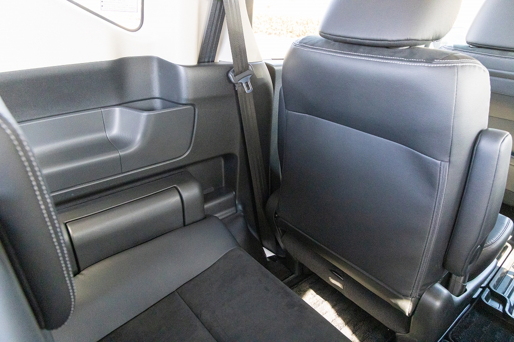 ほかの座席に比べると3列目シートが少し狭いというか、簡素のは仕方ないところ。それでもドリンクホルダーは用意されています。乗降は大柄の男性では結構大変で、子ども向けでしょう。