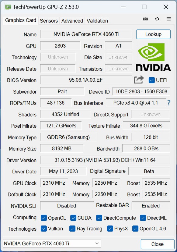 Palit MicrosystemsのGeForce RTX 4060 Ti StormX 8GBをレビュー