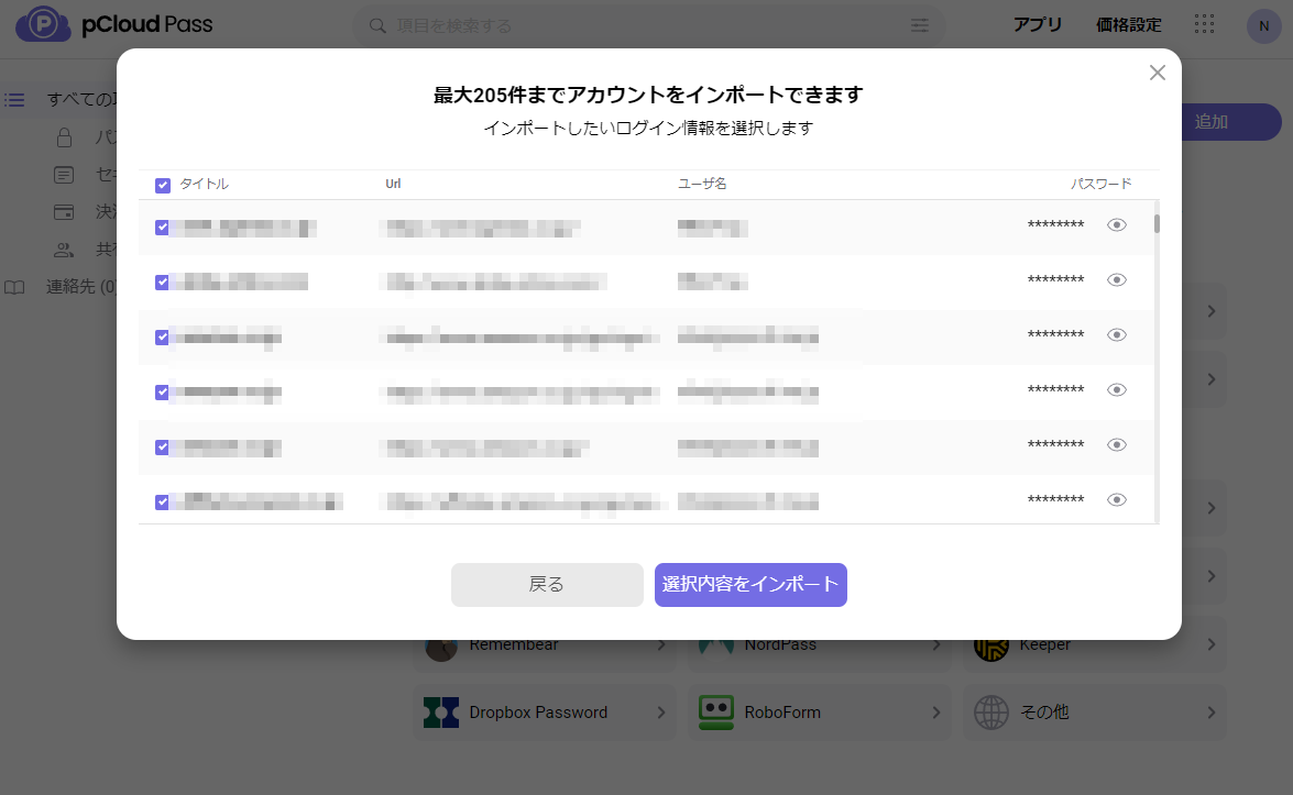 まずはこれをエクスポートする。パスワードはCSV形式で出力されるので、任意の場所に保存。その後、「pCloud Pass」の初期画面で保存したCSVファイルを指定してインポートする。