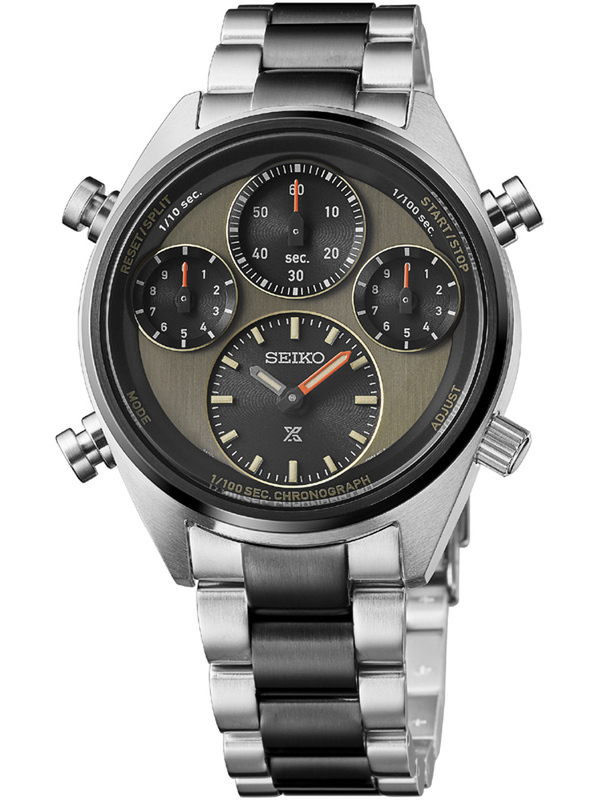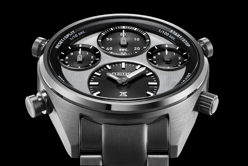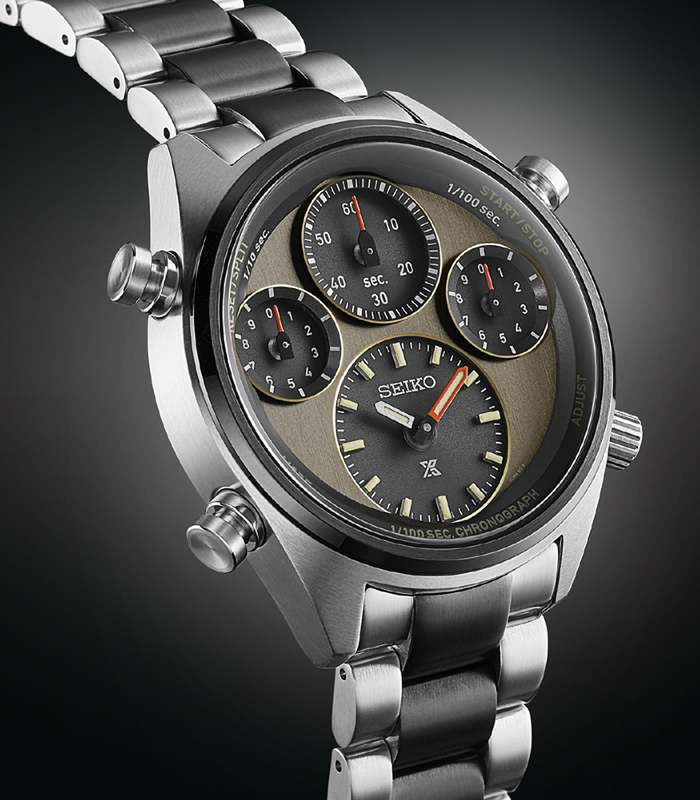 新たに登場するモデルは、新開発のソーラークロノグラフムーブメント「キャリバー8A50」を搭載。積算表示を完全に独立させたダイヤルのレイアウトは計測時間を確実に読み取ることを目的としており、2時位置に1/100秒、10時位置に1/10秒、12時位置に秒積算計を配置し、ストップウオッチモード時には6時位置の基本時計が60分積算計へと切り替わる。さらにそれぞれの針とサブダイヤルのコントラストを高めることで視認性と判読性を高めている。