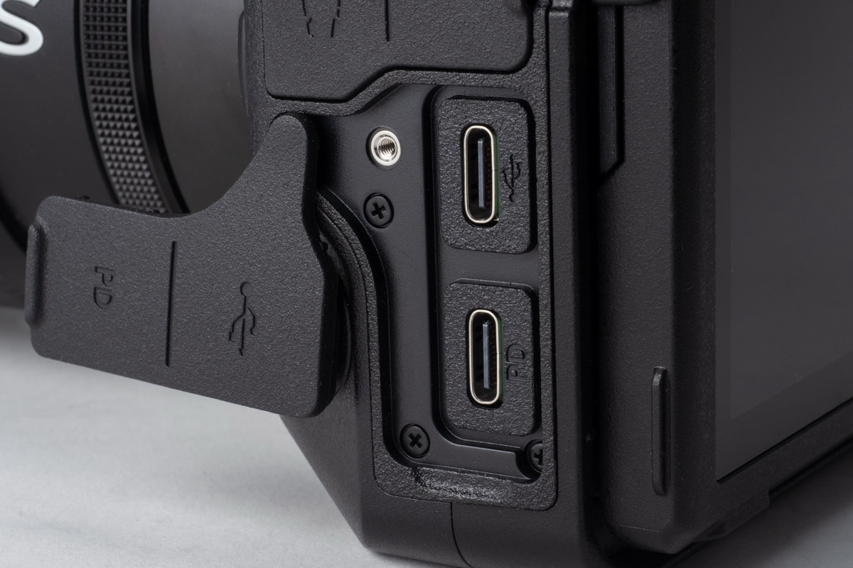 端子類はLANやシンクロ接点が省かれたが、代わりに通信専用と充給電専用の2つのUSB Type-C端子を搭載する。