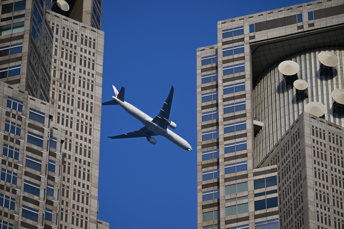 都市のビルの合間と飛ぶ飛行機で被写体検出(飛行機モード)をテスト。「オートエリアAF」だと手前の建物にピントが合うことがあったので、「ワイドエリアAF (S)」で撮影してみた。使用レンズ「NIKKOR Z 100-400mm F4.5-5.6」・絞りF5・シャッタースピード1/1250・ISO160・WBオート。