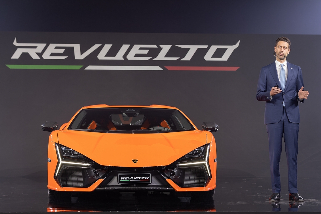 ジャパンプレミアでは、レヴエルトをデザインしたミティア・ボルケルトが挨拶。「レヴエルトは、アドレナリンを目に見える形で表現したもので、そのデザインはランボルギーニの個性的なデザイン言語の未来に向かう扉を拓くモデルです。Y字型のライトシグネチャーは、ランボルギーニを代表するフラグシップモデルの新時代に、極めて重要な役割を果たしています」と語った。
