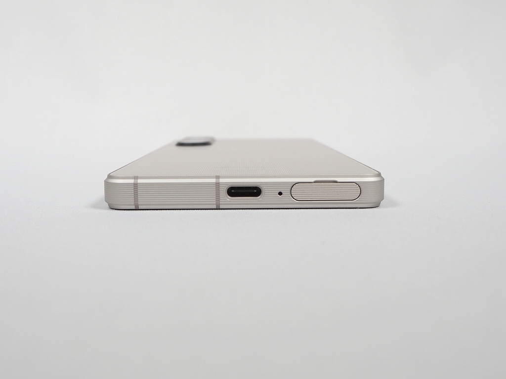 その側面のインターフェースを確認すると、右側面に音量キーと指紋センサーを備えた電源キー、そしてXperiaシリーズのハイエンドモデルに欠かせない存在となったシャッターキーを搭載。底面にはUSB Type-C端子、上部には3.5mmのイヤホンジャックが備わっている。