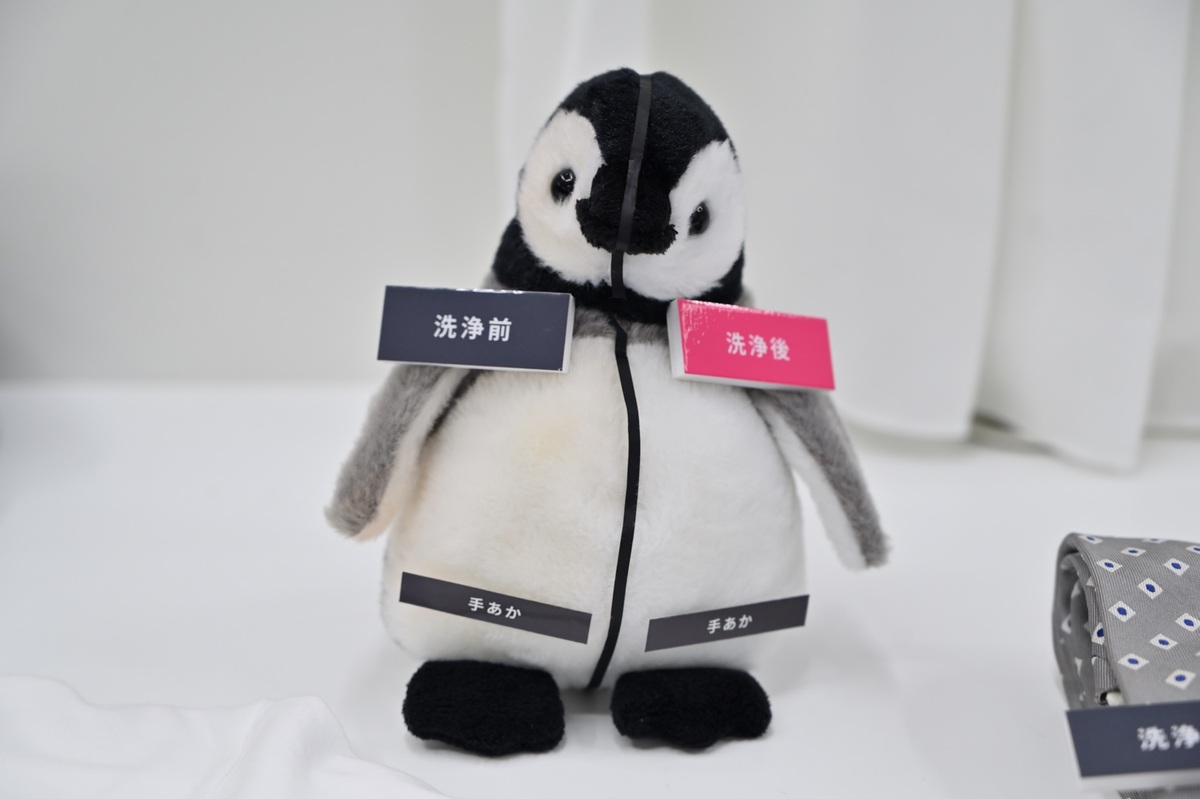 という3工程。発表会では、えりが黄ばんだシャツとブルゾンを洗うデモンストレーションが披露されました。