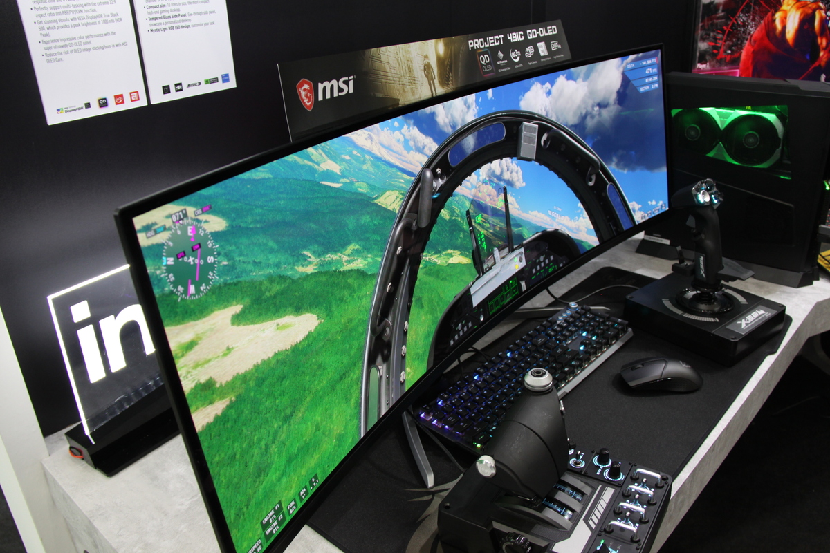 アスペクト比32:9という、ワイドディスプレーを横に2枚並べたサイズの湾曲ディスプレーがMSIの「Project 491C QD-OLED」だ。49インチ、5120×1440ドットの量子ドット有機ELパネルはリフレッシュレート240Hz、応答速度0.03msと、ゲーミングディスプレーとしても使える性能。製品名にProjectとあるように、試作段階なので販売するかどうかは未定だという。