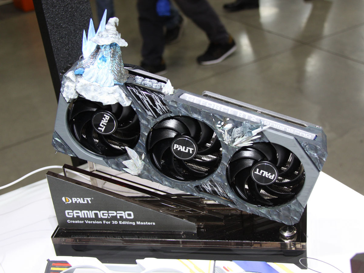 Palitで展示していたおもしろいギミックが、ビデオカードカバーだ。クーラーとバックパネルを覆うカバーの3DデータをPalitのウェブサイトから自由にダウンロードできるようになっている。カバーを好きな色に塗ったり、さまざまな装飾を施せば、自分だけのビデオカードを作れるわけだ。買ったあともカバー作りで楽しめるのがうれしい。