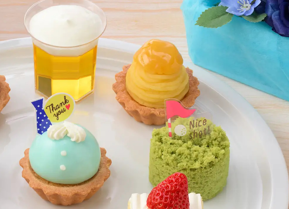 「父の日セレクション(9個入)」はゴルフにビールなど、お父さんの好きなものをデザインしたプチケーキを詰め合わせている。