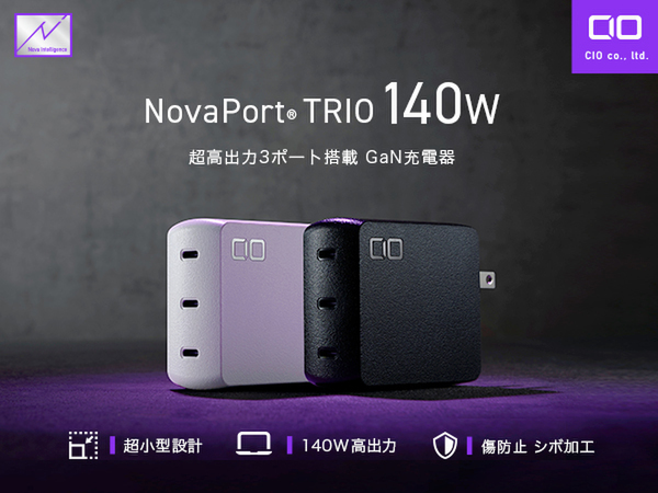 CIOは6月12日、140W対応充電器「NovaPort TRIO 140W」を発売した。実売価格は1万2980円前後の見込み。