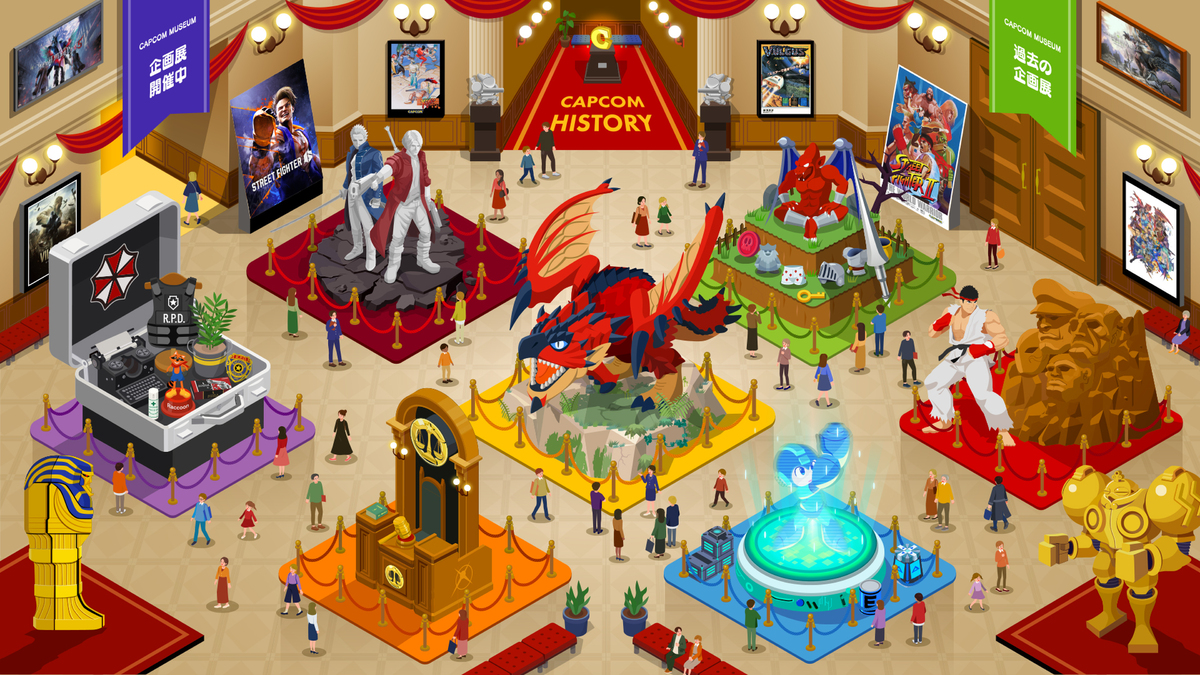 カプコンタウン内に設置された「ミュージアム」では、主要なゲームシリーズの原画や開発資料などが約500点閲覧でき、『ストリートファイターII』『ロックマン』『ファイナルファイト』など懐かしいゲームが無料で遊べる「レトロゲームズ」のコーナーも用意されている。