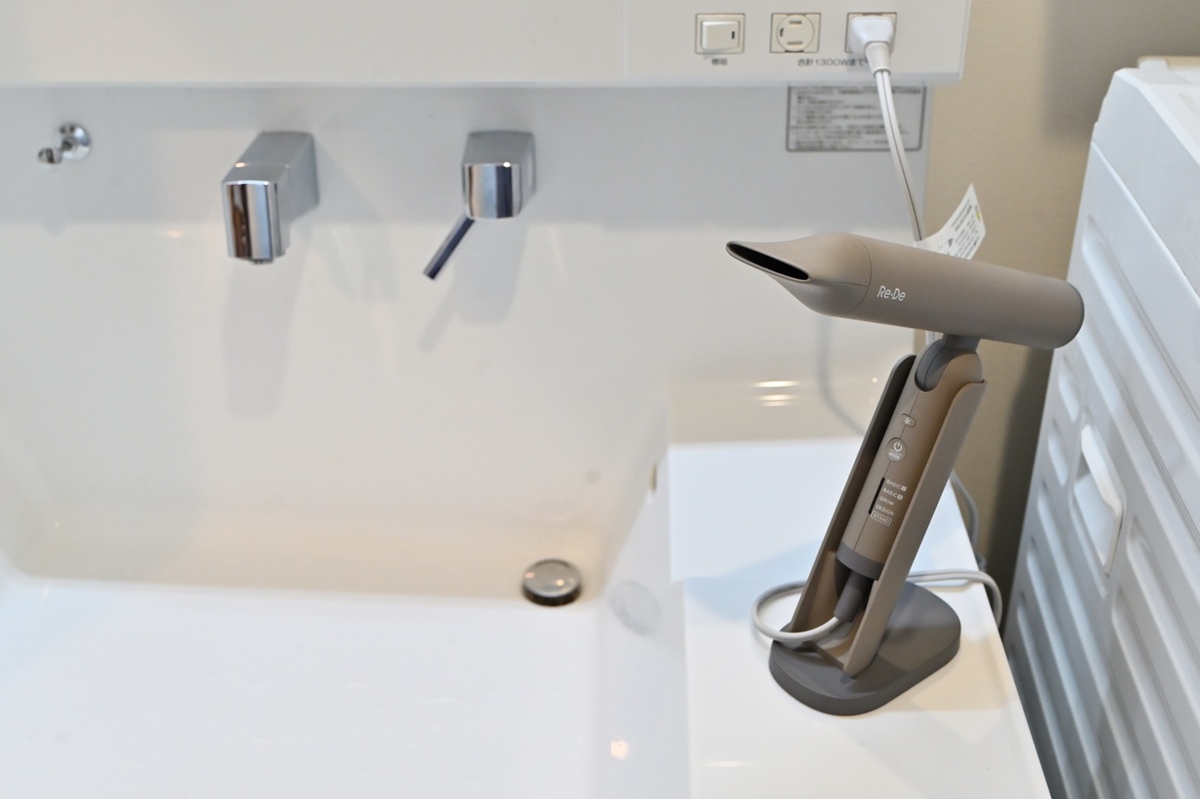 とにかく小さくて軽いのが特徴で、洗面所でも場所をとらず邪魔になりません。付属のスタンドは洗面所にそのまま置いておきたいくらいの見た目です。