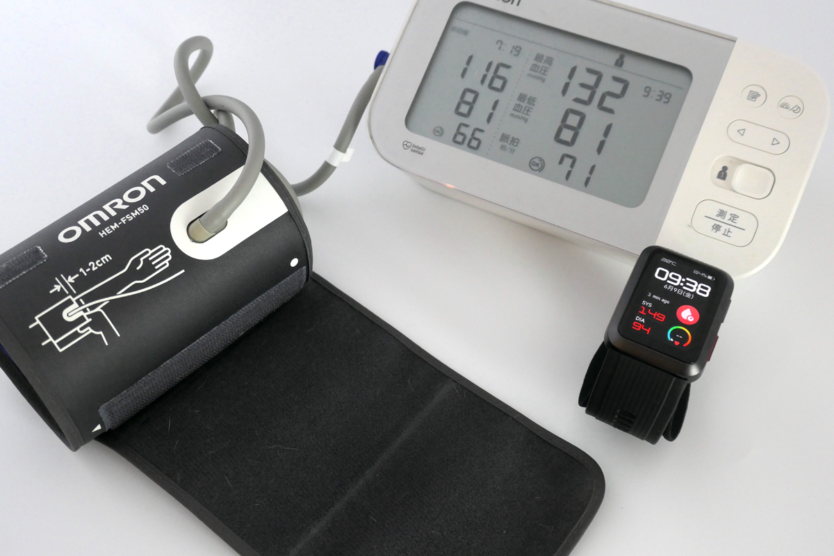 血圧値は、筆者が普段使っている上腕式の血圧計よりも高い数値になることが多かったです。実は正確な血圧を測るのは結構難しく、カフの巻き方や姿勢によって、かなり数値が変わります。また、1日の間にも血圧は大きく変動します。ということもあり、朝の起床時と夜の就寝前に計測して、変動をチェックするのがよしとされています。毎日同じ時間に、同じ場所で、落ち着いた状態で計測することで、計測値の揺らぎというか誤差を減らせるわけです。それでも、「あれ? 今日の血圧、こんなに高いの?」ということはあり、再度計測すると正常値でほっとするといったこともあります。