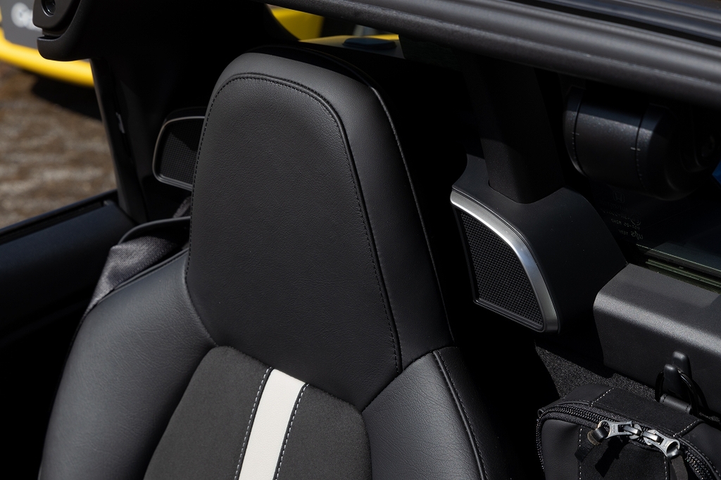 音の話ついでに、2台のオープンカーもご紹介しましょう。BEATとS660です。BEATにもカーオーディオが用意されていましたが、BEAT誕生20周年を記念して、2011年にiPhoneなどに対応するモデルを販売。販売終了して久しいモデルに向けたカーオーディオを作るとは恐れ入ります。そしてBEATにはスカイサウンドシステムと呼ぶ、ヘッドレスト付近にスピーカーを配置して、オープンエアーでも音楽が楽しめるアイテムが用意されていました。