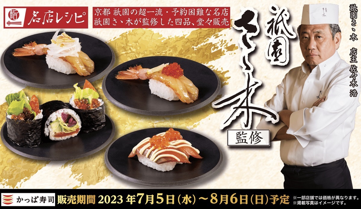 かっぱ寿司は7月5日〜8月6日の期間、京都の名店「祇園 さゝ木」監修の「名店レシピ」4商品を販売する。