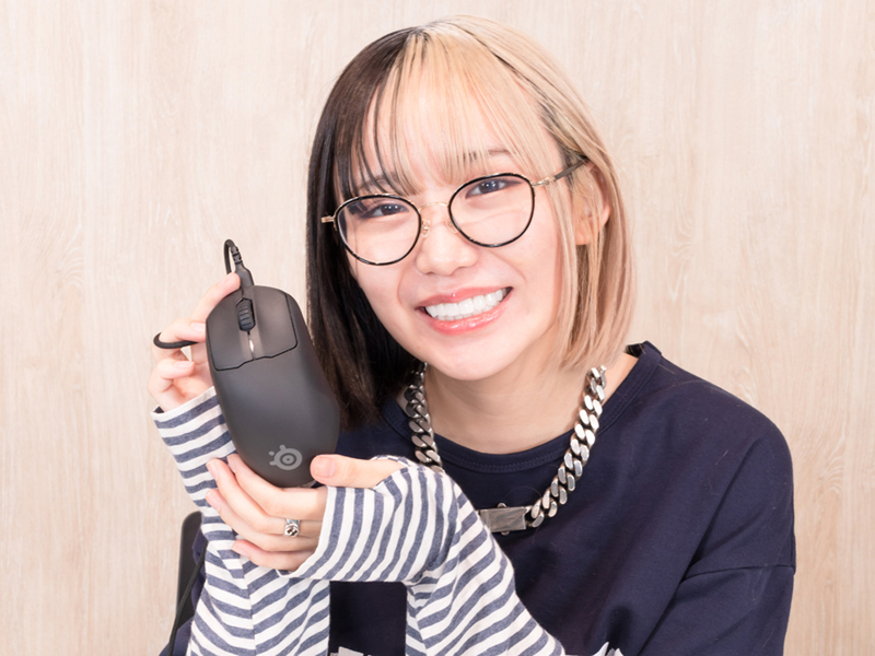 はつめさん:子供の頃に、お父さんに秋葉原に連れて行ってもらって、初めて買ったゲーミングマウスが、SteelSeriesの「Kinzu V2」だったんです。すごく平らで、私の小さな手でも握り心地がよくて。あと、当時マウスってほとんどカラーが黒だったんですけど、Kinzu V2は赤とか黄色のモデルがあって、すごい衝撃を受けたんですよね。お父さんに「これがいい!」って伝えて、買った思い出があります。