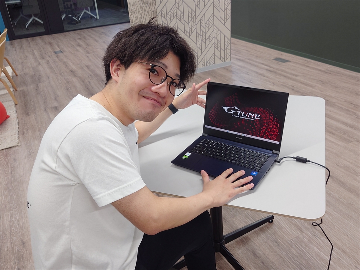 松永:部屋が狭いので、片づけられるノートPCがいいですね。このマウスコンピューターさんのノートPCは、ゲーム向けと聞いていましたが、思ったよりサイズが大きくなく、軽くて驚いています。もっと、ゲーム用だと大きくて重いイメージがあったので。