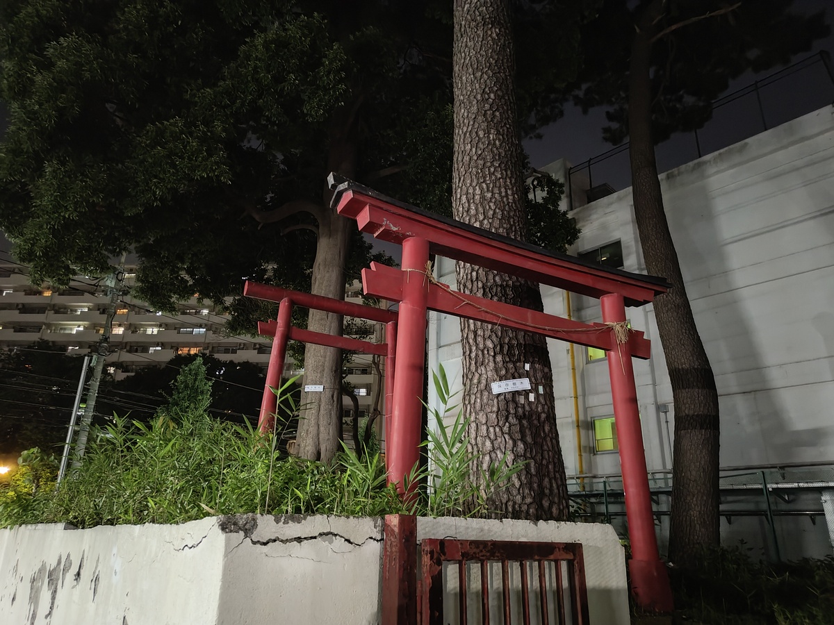 生半可な暗さではナイトモードになってくれないので、ちょっと不気味だけど、住宅街の暗い稲荷神社に登場願った。