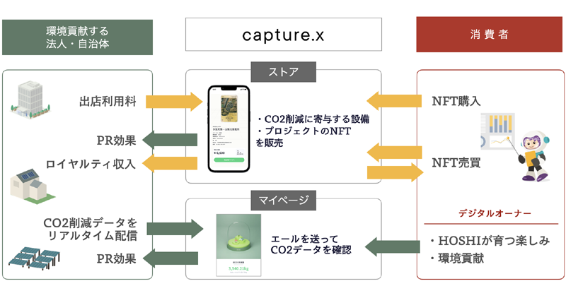 ・ビジネスモデルとして、capture.xが環境対策設備やプロジェクトをPRできるストア型プラットフォームであること
