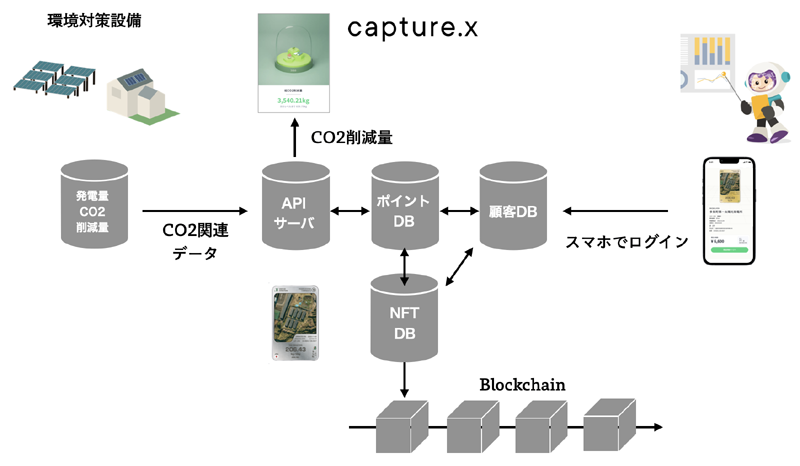 ・上記サービスモデルを実現するため、ブロックチェーン(マルチチェーン)上のNFTとして、環境対策設備およびプロジェクトを保存し、プロダクトを実装した点