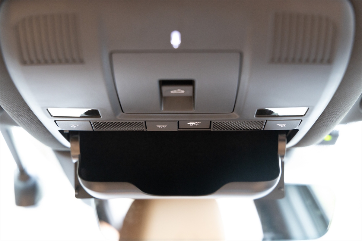 運転席まわりを見回すと、コインポケットがあったり、グラスケースがあったり、スロットインDVDプレーヤーがあったりと、イマドキのSUVでは見かけない装備がちらほら。クルマの中でのお化粧直しに便利なサンバイザー裏のミラーはスライド式で、駐車券を挟むスペースもちゃんと用意されています。ちなみに唯さんは最初、コインケースを「これ、灰皿?」と勘違い。ちなみに彼女は喫煙者ではありません。