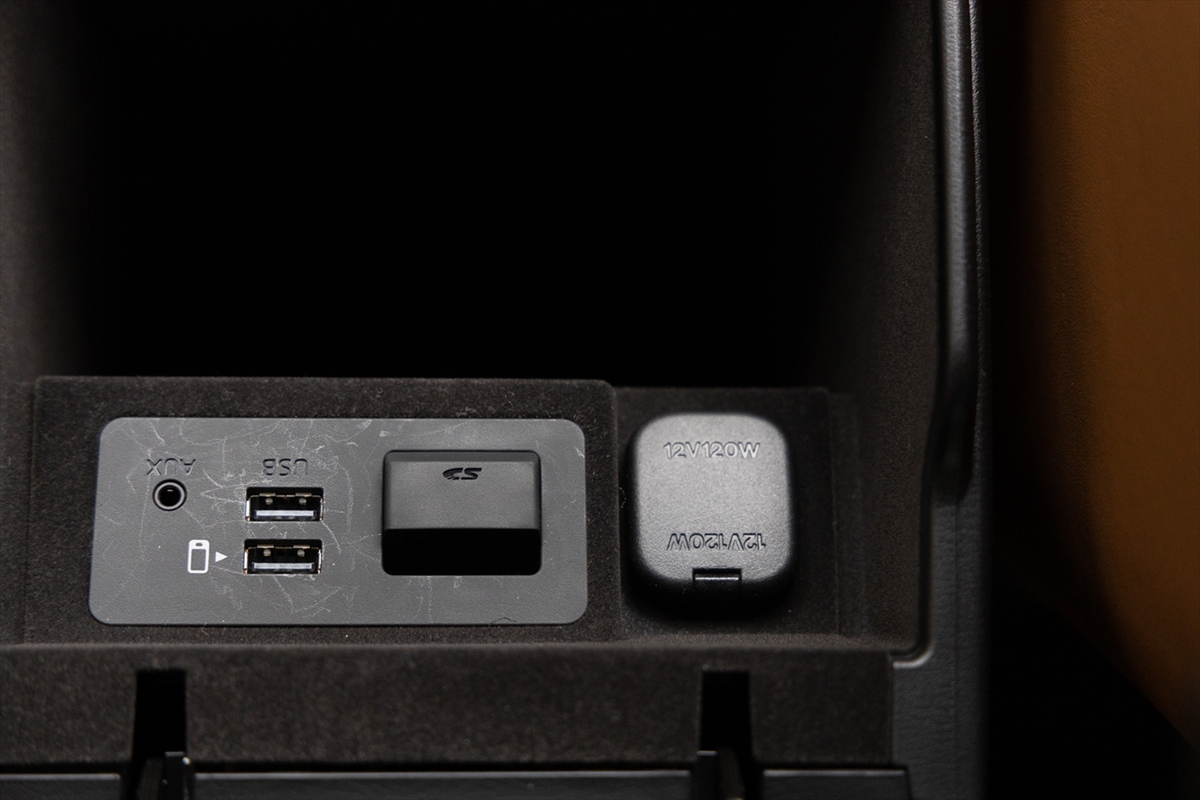ASCII.jpに重要なUSB端子はアームレストの中にあり、タイプAが2系統。うち1系統はインフォテイメントシステムとつながります。12Vのアクセサリーソケットもアームレストの中。アームレスト内に置くことで、ケーブルまわりはスッキリするのですが、いちいち開けたりするのが面倒。あと、12Vアクセサリーソケットはポータブルバッテリーを使う人からすると「ケーブルをさしたらフタが閉めづらい」ということも。挟まれて置かれたSDカードスロットはナビのアクティベートなどに用います。コッソリAUX端子が用意されているのですが「イマドキ、ライン入力でクルマと接続することってあるのかな?」と思ったり思わなかったり。