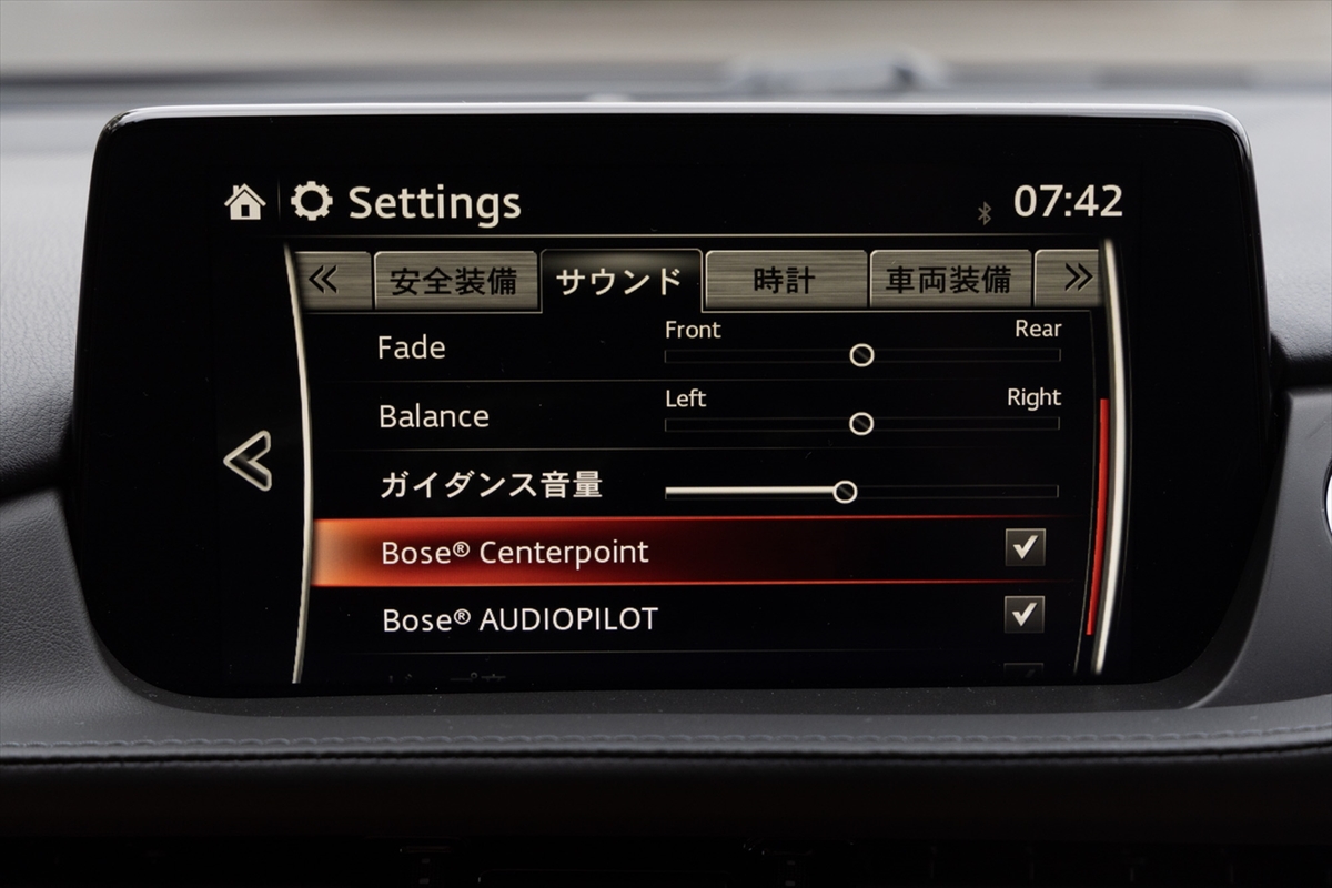 カーオーディオはBOSEのシステムを採用。中低域に量感をもたせたサウンドバランスで、耳あたりのよい柔らかな音が楽しめます。