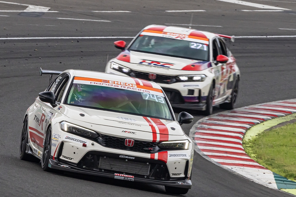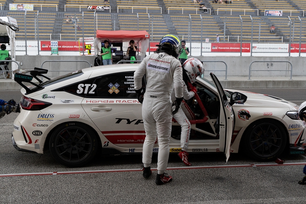 せっかくなので、もうひとつの特別自己啓発チームであるHRDCの様子もご紹介しましょう。今シーズンは開幕戦優勝、第2戦の富士24時間では3位と好成績。今大会も表彰台を狙いたいところです。ちなみにウェイトハンディは45kg。今大会、ST-2クラスには三菱のEVO10が2台、GRヤリスが2台、シビック TYPE Rの計5台が参加しました。ここはニュルブルクリンクFF量販車最速の実力を、四駆勢にみせつけたいところです。