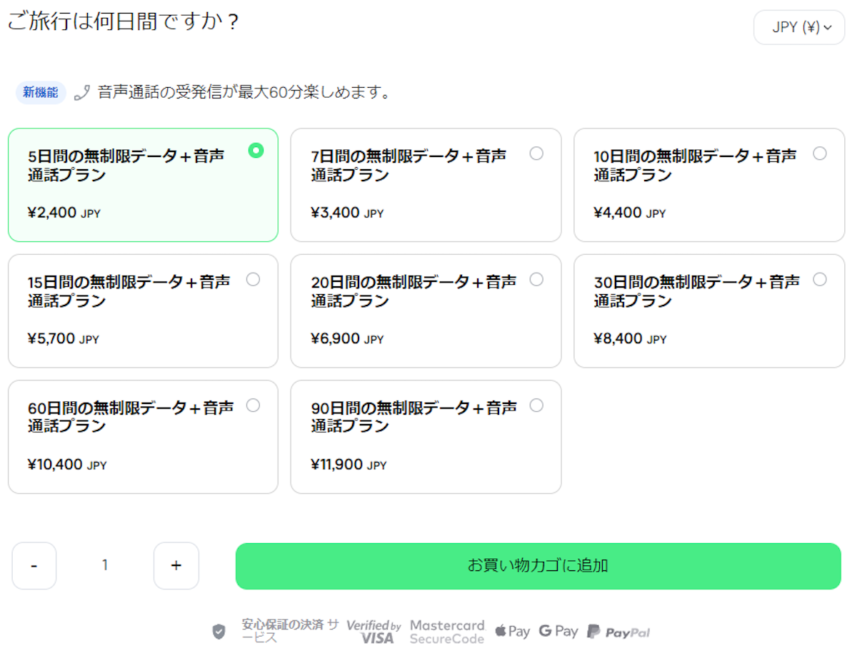 「Holafly SIM」と「Trip SIM」は、どちらも後者のパターンです。まず、公式サイトから渡航先と旅程にあったプランを検索して購入しましょう。