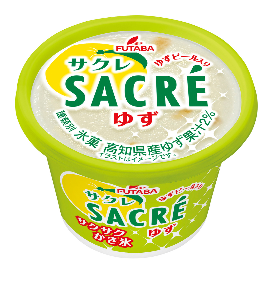 サクレゆずは、高知県産ゆず果汁を使用したゆず味かき氷の中に、ゆずピールが入ったアイス。みずみずしくジューシーな味わいのサクサク食感が楽しめるかき氷ということです。高知県産ゆず果汁を2%使用しています。