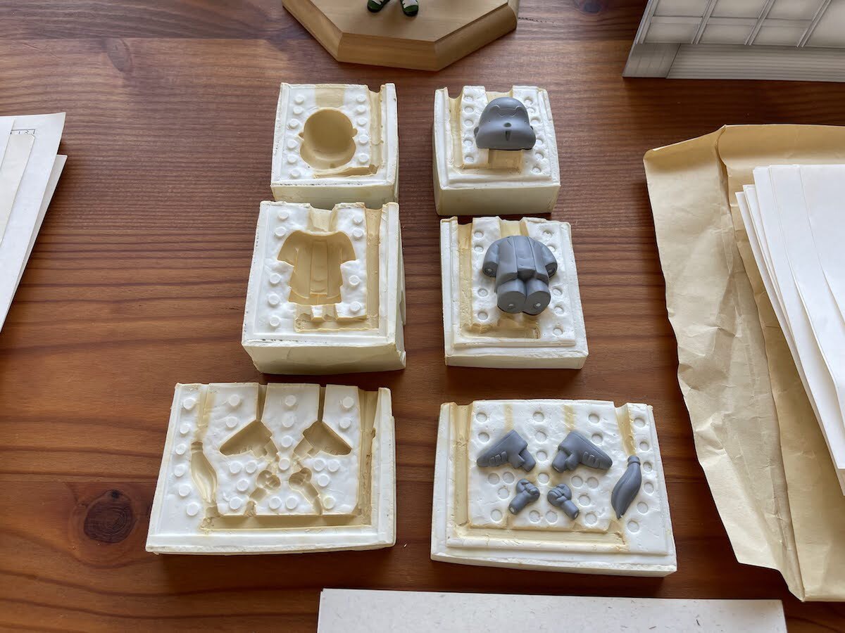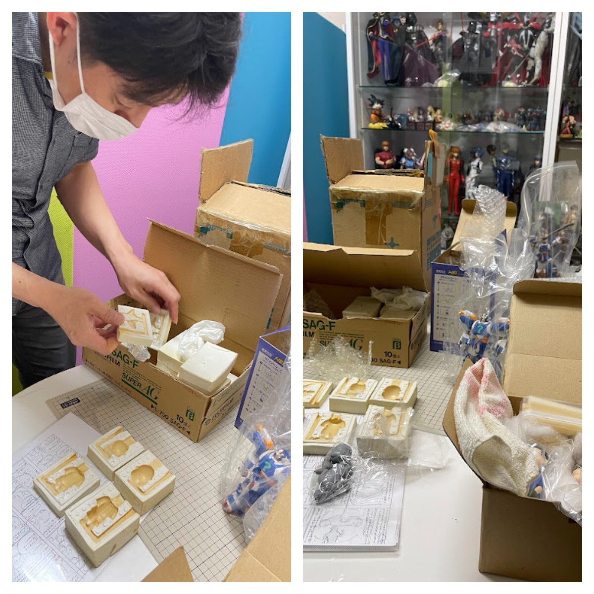 このカオスフィギュアは、ワンフェスのデイーラー体験取材のため、個数限定で販売したもの。この澤田さんが保管してくれていたキャスト型とその原型を見た瞬間、当時編集部での仕事が終わった後に澤田さんの事務所に行って、夜通しこの型にレジンを流し込み、ガレキ用パーツを量産していたワンフェス前夜を思い出しました。あの夜も、もう25年近く前になるのか~。
