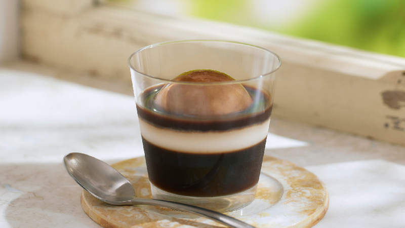 コーヒーの苦みとバニラの甘みが楽しめるというアフォガード風ゼリー。コーヒーの味わいもぐっと感じられるカップスイーツです。