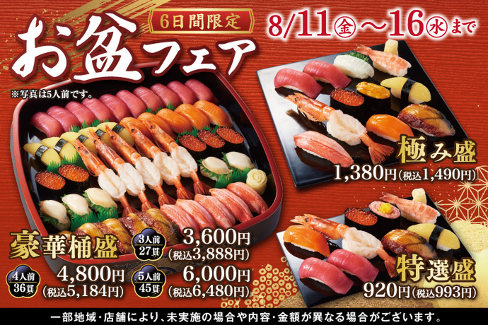 持ち帰り寿し店の「小僧寿し」「茶月」を運営する小僧寿しは、持ち帰り寿し店「小僧寿し」にて、8月11日~16日の期間限定で「お盆フェア」を開催します。