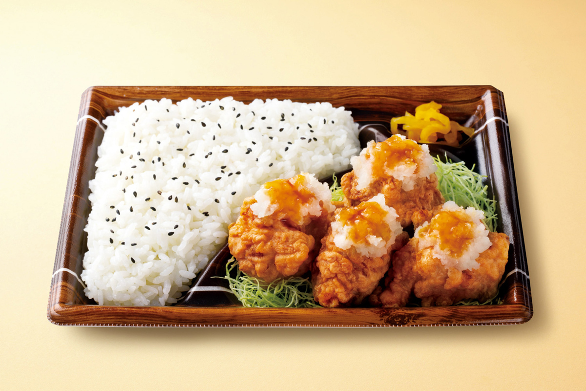 期間中、「若鶏のこだわり醤油唐揚げ弁当」「おろし唐揚げ弁当」の唐揚げを通常の4個から5個に1個増量して販売します。なお、イオン、イオンスタイル、マックスバリュ、ダイエー、カスミ内の店舗では実施しません。