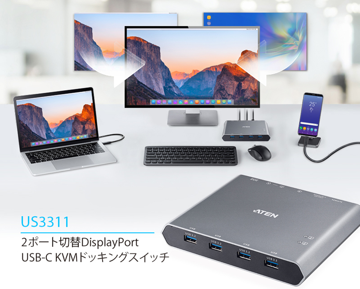 ATENジャパンは8月4日、USB Type-C接続で2ポート切り替え対応のドッキングスイッチ「US3311」を発売した。直販価格は3万2780円。
