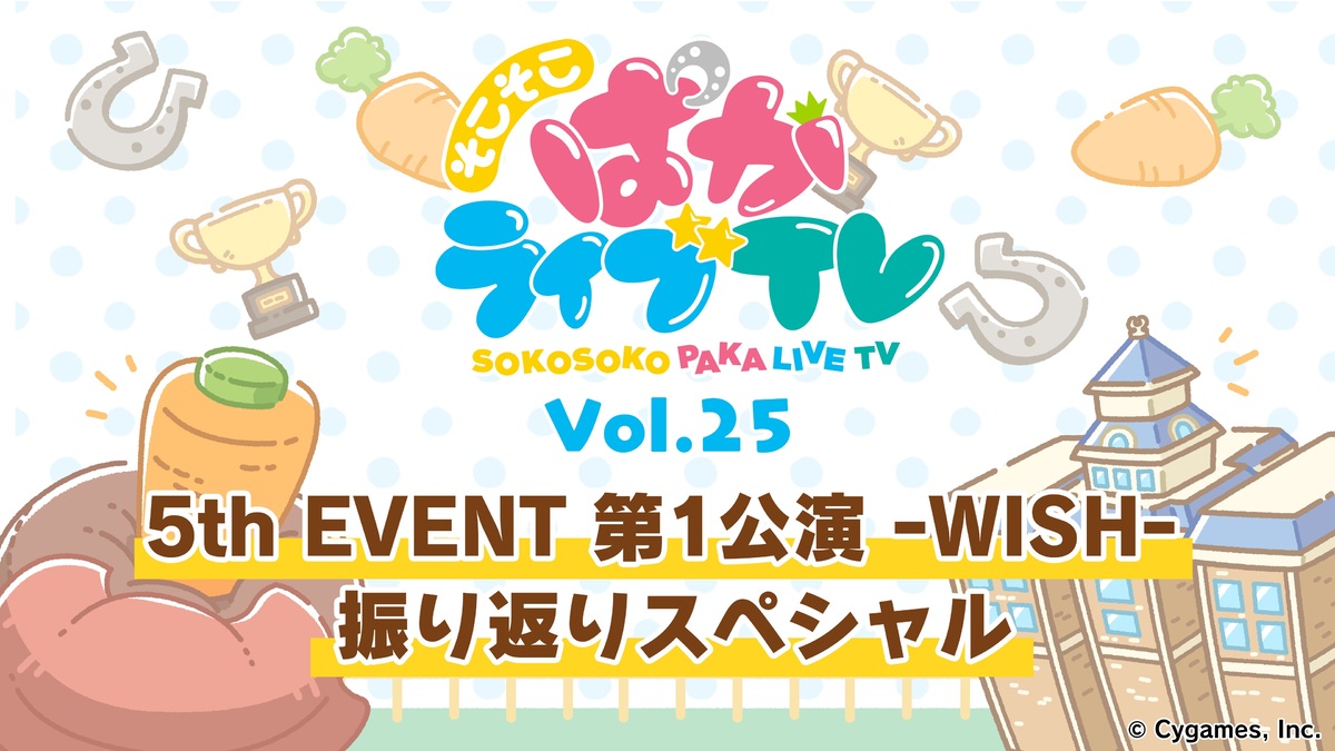 Cygamesは同社が開発・運営するゲーム『ウマ娘 プリティーダービー』のキャストが送るトーク番組「そこそこぱかライブTV Vol.25 5th EVENT 第1公演 -WISH- 振り返りスペシャル」を、本日2023年8月4日19時から公式YouTubeチャンネル「ぱかチューブっ!」にて公開すると発表。