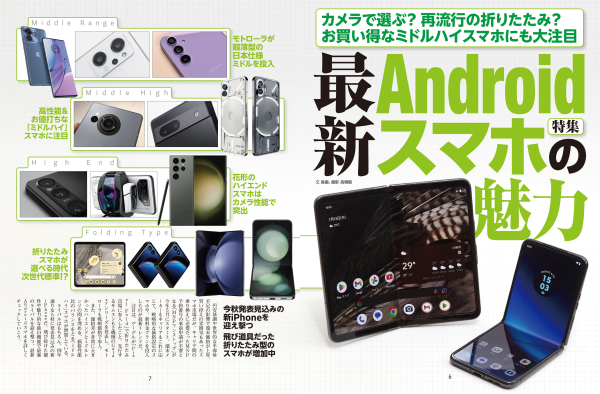 選択肢が増えてきた折りたたみ型。Androidスマホの世界は広がっている。特集1では、注目度の高い製品をピックアップして紹介。また、特集2では店頭で注目を浴びる家電トレンドを整理、この夏の新傾向を探っていく