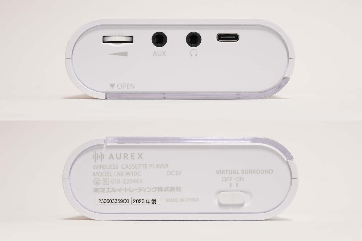 端子は、3.5mmステレオミニジャック(実用最大出力2.5mW+2.5mW、32Ωイヤフォン)×1、外部入力端子(AUX)×1、USB Type-C(給電用)×1を用意。電池は単3形アルカリ乾電池2本を使用。電池駆動時間は約16時間です。