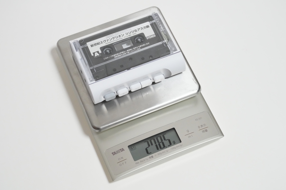 本体サイズは94×121.5×33mm、重量は乾電池なしで約0.2kg、乾電池含んで約0.23kg。ちなみに「ウォークマンII WM-2」の重量は乾電池なしで約226g。「AX-W10C」のほうがわずかに軽いわけですね。